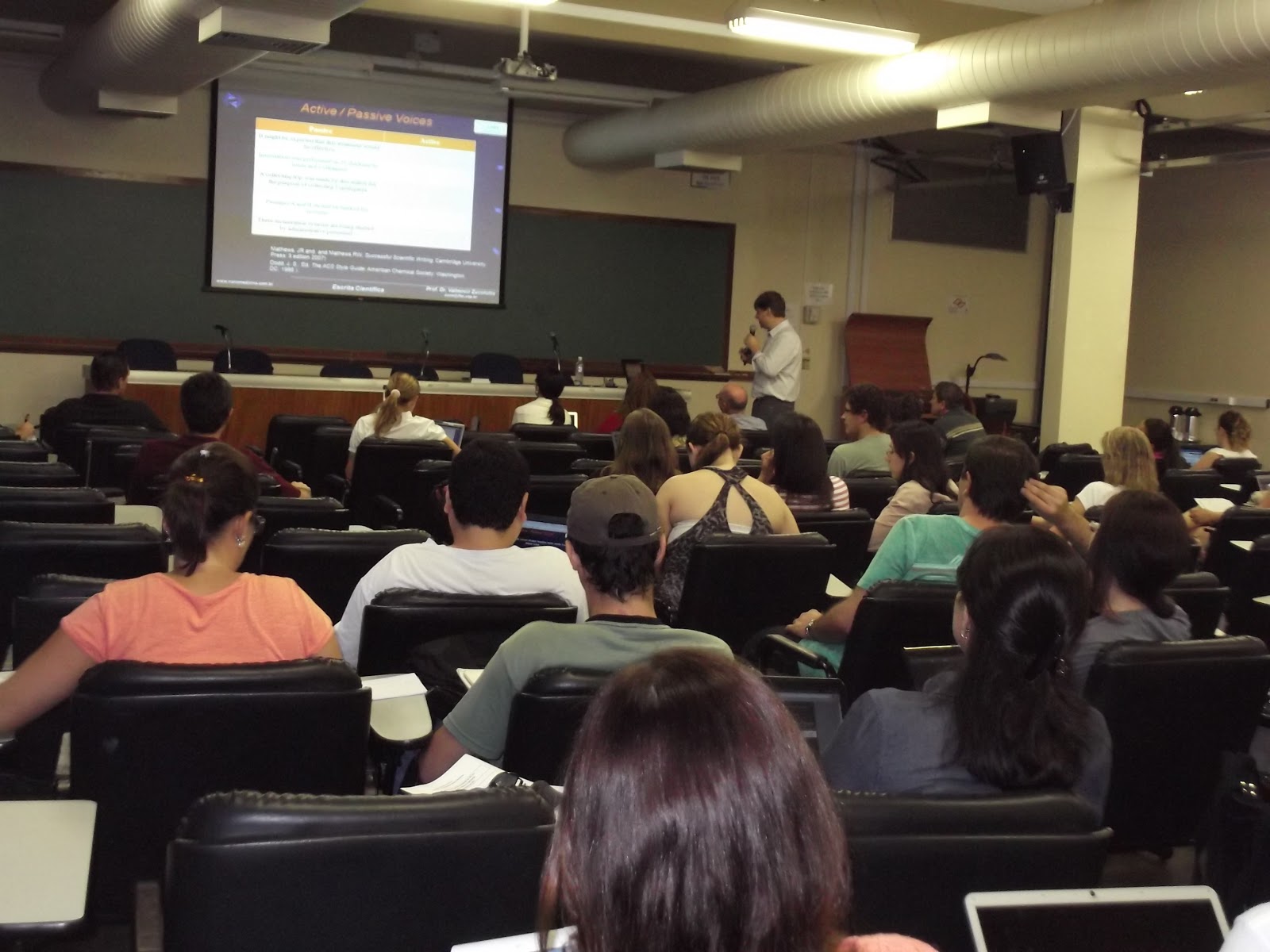 Ontem e hoje (13 e 14/12) aconteceu na FFCLRP o workshop de capacitação de pesquisadores da USP em publicação científica na área de exatas ou de interface entre exatas e biotecnológicas. Foi ministrado pelo Prof. Valtencir Zucolotto, e faz parte do programa de capacitação dos pesquisadores da USP realizado pelo SIBi-USP.